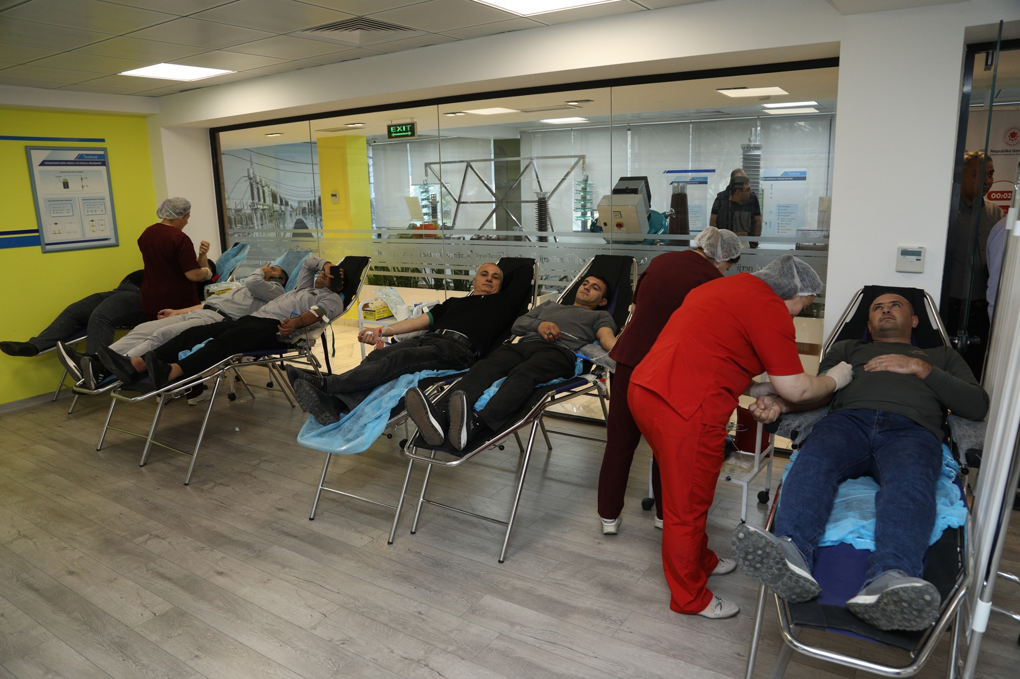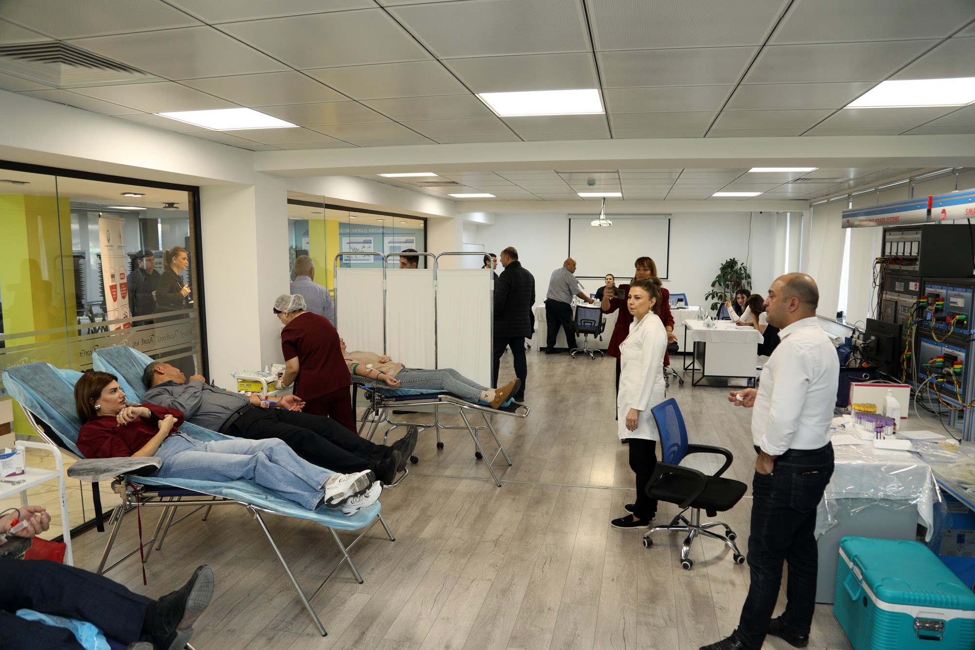 Aksiyada iştirak edən donorlar qanvermədən öncə Respublika Qan Bankı Publik Hüquqi Şəxsin tibbi heyətinin bütün tibbi yoxlanışlarından keçdikdən sonra qan veriblər.